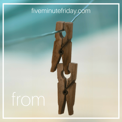 Today I am joining the positive writing community over at Five Minute Friday for their weekly link-up. Each week we gather to write on a common theme. This week our theme is From.