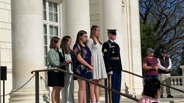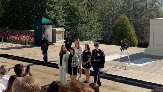 It was a tranquil morning at Arlington National Cemetery. We had the privelage of presenting a wreath from our school during the Changing of the Guard Ceremony at the Tomb of the Unknown Soldier. Four students were selected by a committee of teachers based on essay applications to be a part of the ceremony. Several of their parents flew to DC to surprise them that morning at the cemetery. This was such a peaceful morning of touring gravesites of people like John Glenn, JFK, Ruth Bader Ginsburg, Robert E. Lee, Thurgood Marshall, and the grandfather of one of our students. As we walked through the site I was so impressed by the respect that was shown by the students toward the fallen heroes of our country.