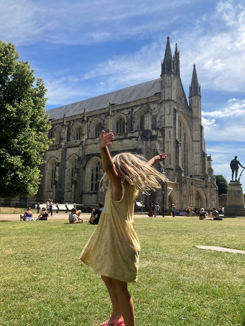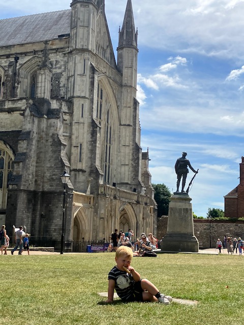 During this second week, our itenerary has taken us to The Play Shack in Hedge End, Bognor Regis beach, Itchen Valley Country Park, and the historic city of Winchester. We’ve visited with my mother-in-law and her partner along with my soon-to-be brother-in-law. My husband’s aunts visited from Dover as well and enjoyed being worn out by our energetic children at the park. Our menus this week have been filled with the customary British foods: fish and chips, sausage rolls, picnic sandwiches, and I tried cockle for the first time on the seafront (not sure I’d ever order again, but it was fun to give it a go!)